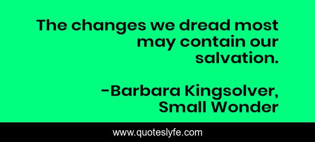 "Barbara Kingsolver, Small Wonder Quotes." Quoteslyfe.com, 2025. Fri. 05 Dec. 2025. <https://www.quoteslyfe.com/quote/The-changes-we-dread-most-may-contain-59421>.