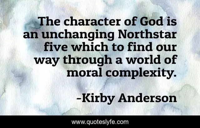 This page presents the quote "The character of God is an unchanging Northstar five which to find our way through a world of moral complexity.". Author of this quote is Kirby Anderson. This quote is about character-of-god, ethics, morality,.