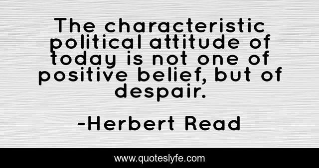 This page presents the quote "The characteristic political attitude of today is not one of positive belief, but of despair.". Author of this quote is Herbert Read. This quote is about positive, confidence, political, today,.