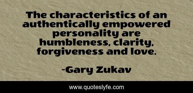 This page presents the quote "The characteristics of an authentically empowered personality are humbleness, clarity, forgiveness and love.". Author of this quote is Gary Zukav. This quote is about clarity, love, affection, personality,.