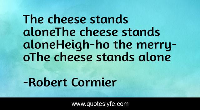 This page presents the quote "The cheese stands aloneThe cheese stands aloneHeigh-ho the merry-oThe cheese stands alone". Author of this quote is Robert Cormier. .