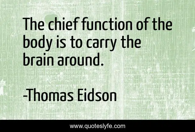 This page presents the quote "The chief function of the body is to carry the brain around.". Author of this quote is Thomas Eidson. This quote is about thinking, brain,.