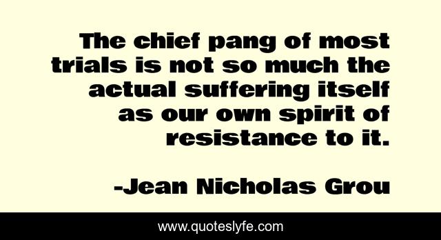 This page presents the quote "The chief pang of most trials is not so much the actual suffering itself as our own spirit of resistance to it.". Author of this quote is Jean Nicholas Grou. .
