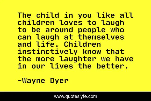 This page presents the quote "The child in you like all children loves to laugh to be around people who can laugh at themselves and life. Children instinctively know that the more laughter we have in our lives the better.". Author of this quote is Wayne Dyer. .