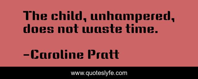 This page presents the quote "The child, unhampered, does not waste time.". Author of this quote is Caroline Pratt. This quote is about progressive-education, school, education, children,.