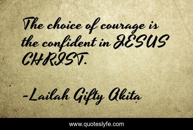 This page presents the quote "The choice of courage is the confident in JESUS CHRIST.". Author of this quote is Lailah Gifty Akita. This quote is about jesus-christ, faith, christian, choice, confident, courage, inspirational, enthusiasm, theology,.