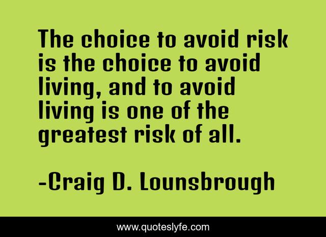 This page presents the quote "The choice to avoid risk is the choice to avoid living, and to avoid living is one of the greatest risk of all.". Author of this quote is Craig D. Lounsbrough. This quote is about living, avoidant, risk, quality-of-life, fearful, avoid, life, opportunities, possibilities,.