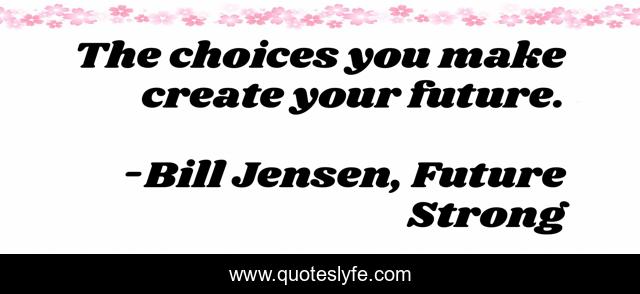 "Bill Jensen, Future Strong Quotes." Quoteslyfe.com, 2025. Fri. 05 Dec. 2025. <https://www.quoteslyfe.com/quote/The-choices-you-make-create-your-future-65209>.