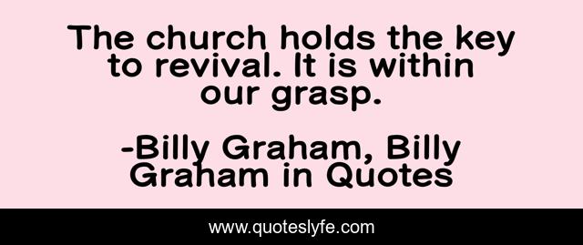 This page presents the quote "The church holds the key to revival. It is within our grasp.". Author of this quote is Billy Graham, Billy Graham in Quotes. This quote is about billy-graham, church,.
