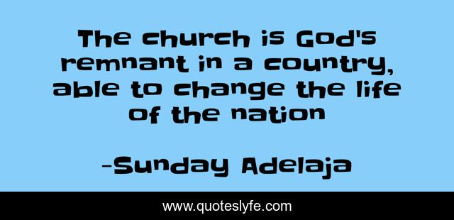 This page presents the quote "The church is God's remnant in a country, able to change the life of the nation". Author of this quote is Sunday Adelaja. This quote is about country, church, change, nation,.