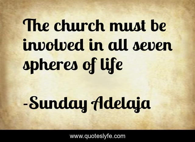This page presents the quote "The church must be involved in all seven spheres of life". Author of this quote is Sunday Adelaja. This quote is about involved, life, seven, church,.