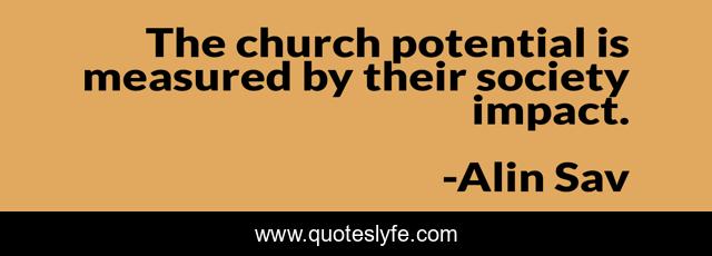 This page presents the quote "The church potential is measured by their society impact.". Author of this quote is Alin Sav. This quote is about spiritual, religion-and-philoshophy,.