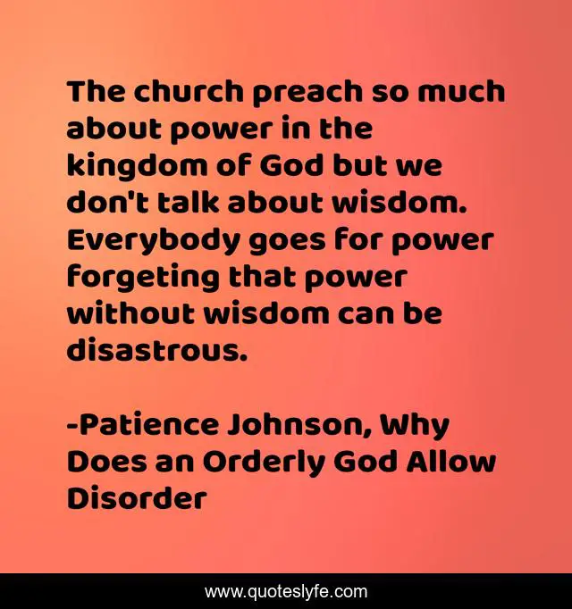 "Patience Johnson, Why Does an Orderly God Allow Disorder Quotes." Quoteslyfe.com, 2025. Tue. 09 Dec. 2025. <https://www.quoteslyfe.com/quote/The-church-preach-so-much-about-power-47893>.