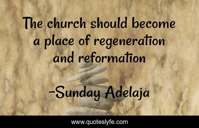This page presents the quote "The church should become a place of regeneration and reformation". Author of this quote is Sunday Adelaja. This quote is about reformation, place, regeneration, church,.