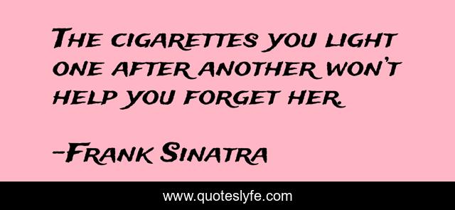 This page presents the quote "The cigarettes you light one after another won’t help you forget her.". Author of this quote is Frank Sinatra. This quote is about getting-over-it, heartbreak,.