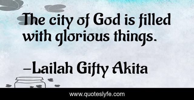 This page presents the quote "The city of God is filled with glorious things.". Author of this quote is Lailah Gifty Akita. This quote is about faith, christian, god, theology, inspirational, enthusiasm,.
