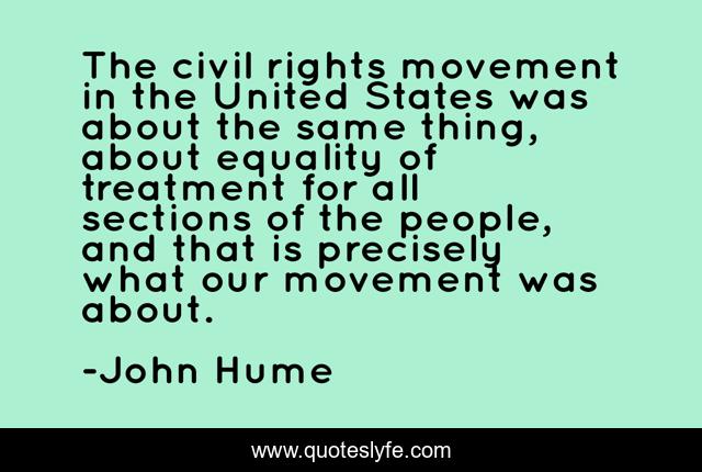 This page presents the quote "The civil rights movement in the United States was about the same thing, about equality of treatment for all sections of the people, and that is precisely what our movement was about.". Author of this quote is John Hume. This quote is about civil rights, people, rights,.