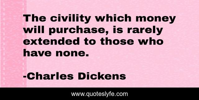 This page presents the quote "The civility which money will purchase, is rarely extended to those who have none.". Author of this quote is Charles Dickens. This quote is about civility, which,.