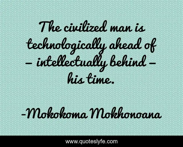 "Mokokoma Mokhonoana Quotes." Quoteslyfe.com, 2025. Mon. 08 Dec. 2025. <https://www.quoteslyfe.com/quote/The-civilized-man-is-technologically-ahead-of-196732>.