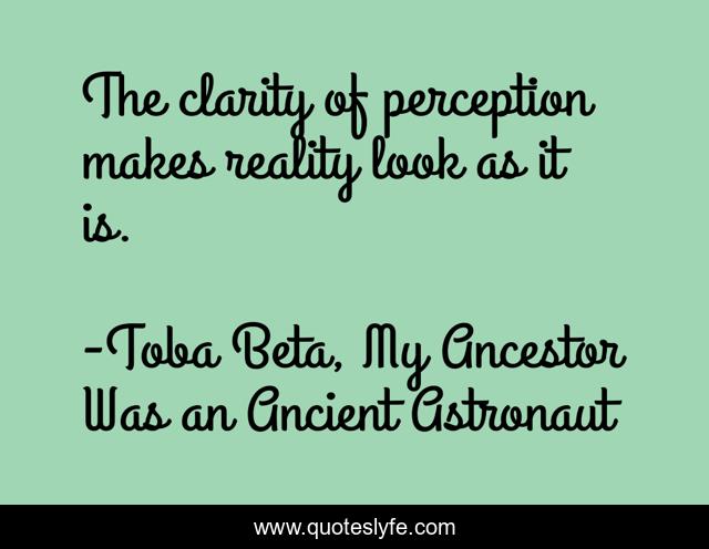 "Toba Beta, My Ancestor Was an Ancient Astronaut Quotes." Quoteslyfe.com, 2025. Sun. 07 Dec. 2025. <https://www.quoteslyfe.com/quote/The-clarity-of-perception-makes-reality-look-93508>.