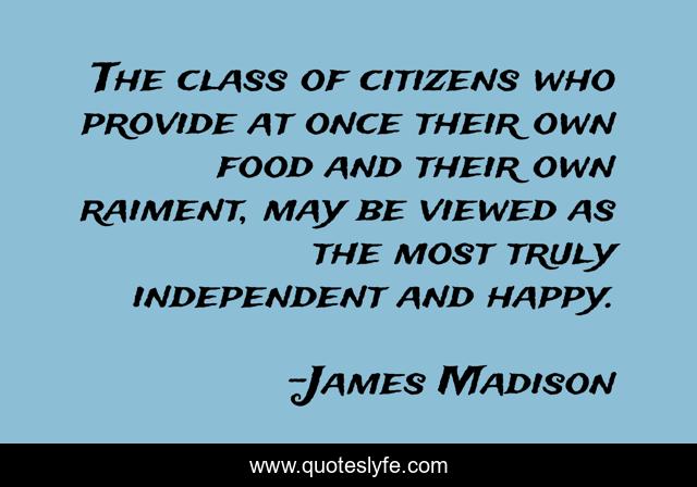This page presents the quote "The class of citizens who provide at once their own food and their own raiment, may be viewed as the most truly independent and happy.". Author of this quote is James Madison. This quote is about food, independent, happy,.