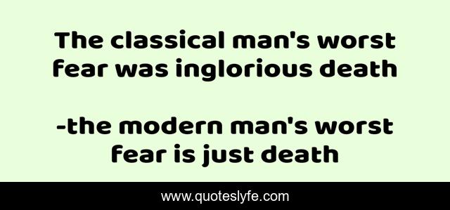 "the modern man's worst fear is just death Quotes." Quoteslyfe.com, 2025. Fri. 05 Dec. 2025. <https://www.quoteslyfe.com/quote/The-classical-man-s-worst-fear-was-194483>.
