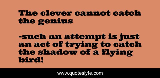 This page presents the quote "The clever cannot catch the genius". Author of this quote is such an attempt is just an act of trying to catch the shadow of a flying bird!. .