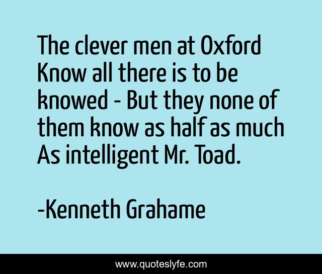 This page presents the quote "The clever men at Oxford Know all there is to be knowed - But they none of them know as half as much As intelligent Mr. Toad.". Author of this quote is Kenneth Grahame. This quote is about scholars, scholarship,.