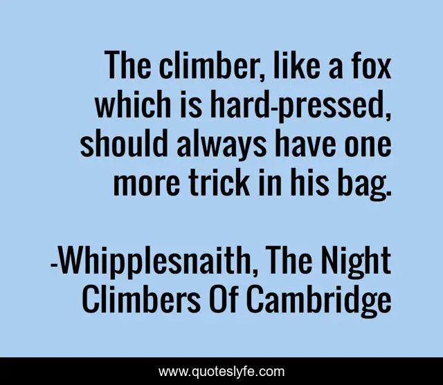 "Whipplesnaith, The Night Climbers Of Cambridge Quotes." Quoteslyfe.com, 2025. Mon. 08 Dec. 2025. <https://www.quoteslyfe.com/quote/The-climber-like-a-fox-which-is-196250>.