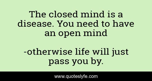 This page presents the quote "The closed mind is a disease. You need to have an open mind". Author of this quote is otherwise life will just pass you by.. .