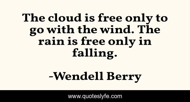 This page presents the quote "The cloud is free only to go with the wind. The rain is free only in falling.". Author of this quote is Wendell Berry. This quote is about freedom, change,.