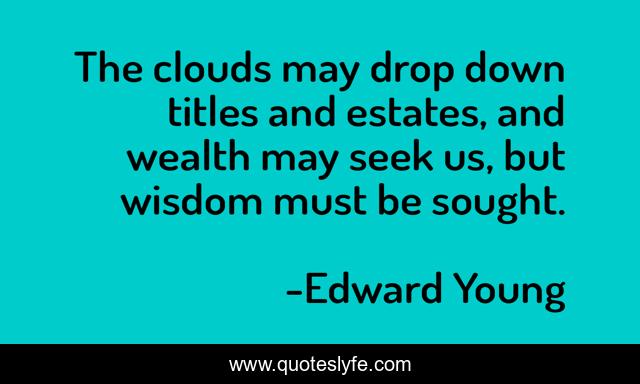 This page presents the quote "The clouds may drop down titles and estates, and wealth may seek us, but wisdom must be sought.". Author of this quote is Edward Young. This quote is about down, clouds, wealth,.