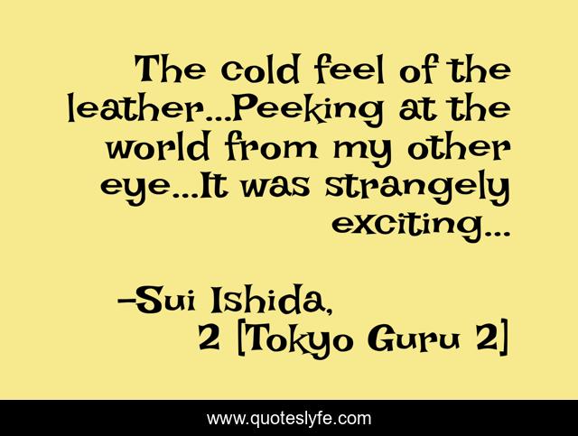 "Sui Ishida, 東京喰種トーキョーグール 2 [Tokyo Guru 2] Quotes." Quoteslyfe.com, 2025. Mon. 08 Dec. 2025. <https://www.quoteslyfe.com/quote/The-cold-feel-of-the-leather-Peeking-156084>.