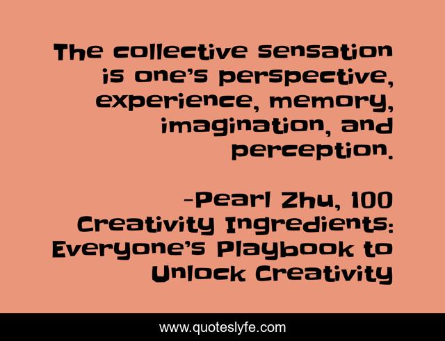 This page presents the quote "The collective sensation is one’s perspective, experience, memory, imagination, and perception.". Author of this quote is Pearl Zhu, 100 Creativity Ingredients: Everyone’s Playbook to Unlock Creativity. .
