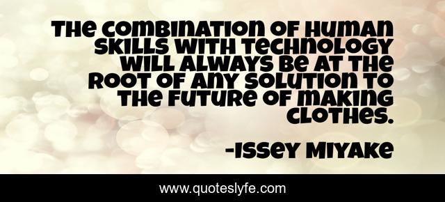 This page presents the quote "The combination of human skills with technology will always be at the root of any solution to the future of making clothes.". Author of this quote is Issey Miyake. This quote is about future, solution, clothes,.