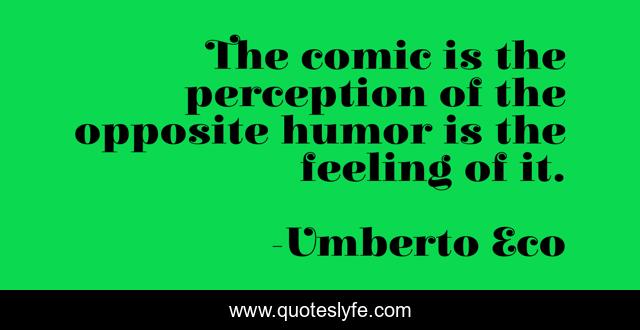 This page presents the quote "The comic is the perception of the opposite humor is the feeling of it.". Author of this quote is Umberto Eco. This quote is about comic, feeling, perception,.