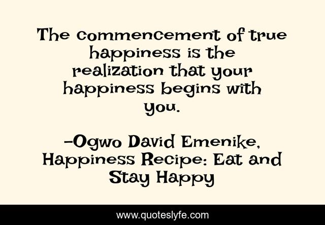 "Ogwo David Emenike, Happiness Recipe: Eat and Stay Happy Quotes." Quoteslyfe.com, 2025. Sat. 06 Dec. 2025. <https://www.quoteslyfe.com/quote/The-commencement-of-true-happiness-is-the-183372>.