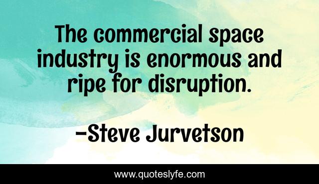 This page presents the quote "The commercial space industry is enormous and ripe for disruption.". Author of this quote is Steve Jurvetson. This quote is about disruption, industry, ripe,.