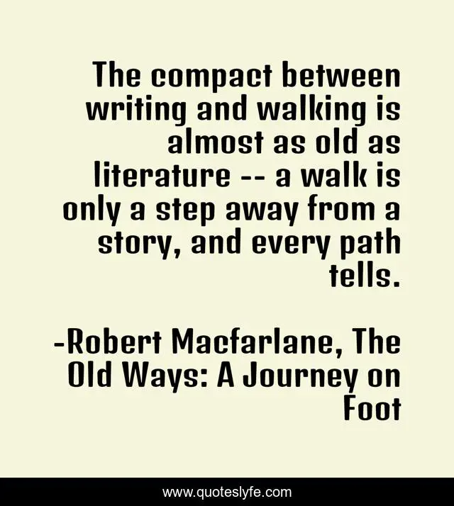 "Robert Macfarlane, The Old Ways: A Journey on Foot Quotes." Quoteslyfe.com, 2025. Sun. 07 Dec. 2025. <https://www.quoteslyfe.com/quote/The-compact-between-writing-and-walking-is-111887>.