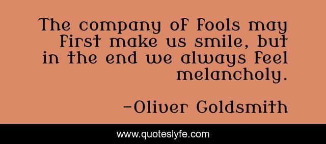 This page presents the quote "The company of fools may first make us smile, but in the end we always feel melancholy.". Author of this quote is Oliver Goldsmith. This quote is about company, end, fools,.