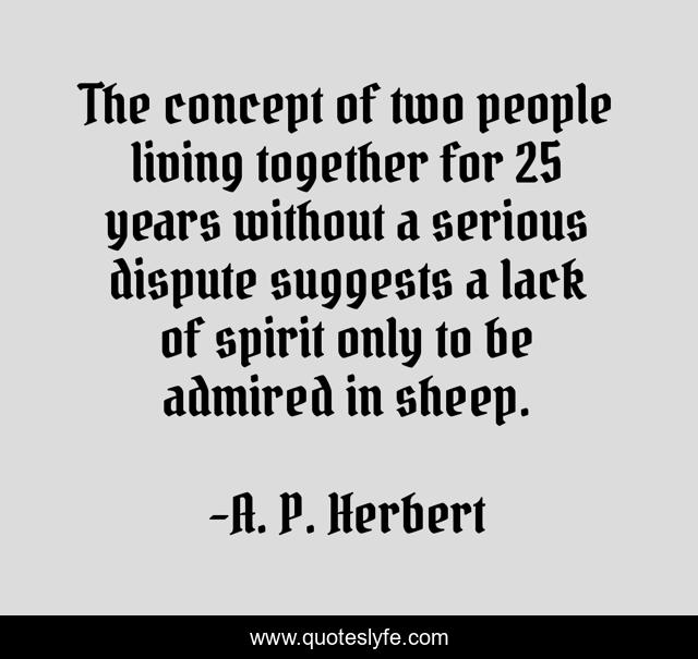 This page presents the quote "The concept of two people living together for 25 years without a serious dispute suggests a lack of spirit only to be admired in sheep.". Author of this quote is A. P. Herbert. This quote is about sheep, together, people,.