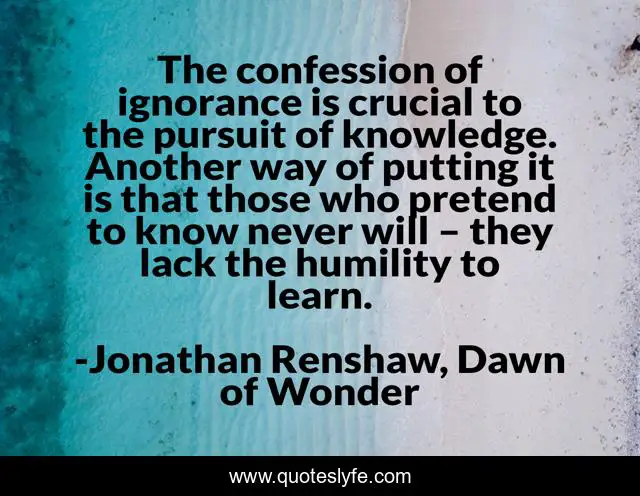 This page presents the quote "The confession of ignorance is crucial to the pursuit of knowledge. Another way of putting it is that those who pretend to know never will – they lack the humility to learn.". Author of this quote is Jonathan Renshaw, Dawn of Wonder. This quote is about humility, knowledge, ignorance,.