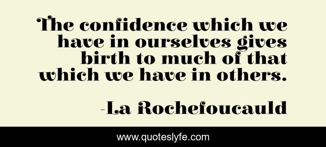 This page presents the quote "The confidence which we have in ourselves gives birth to much of that which we have in others.". Author of this quote is La Rochefoucauld. .