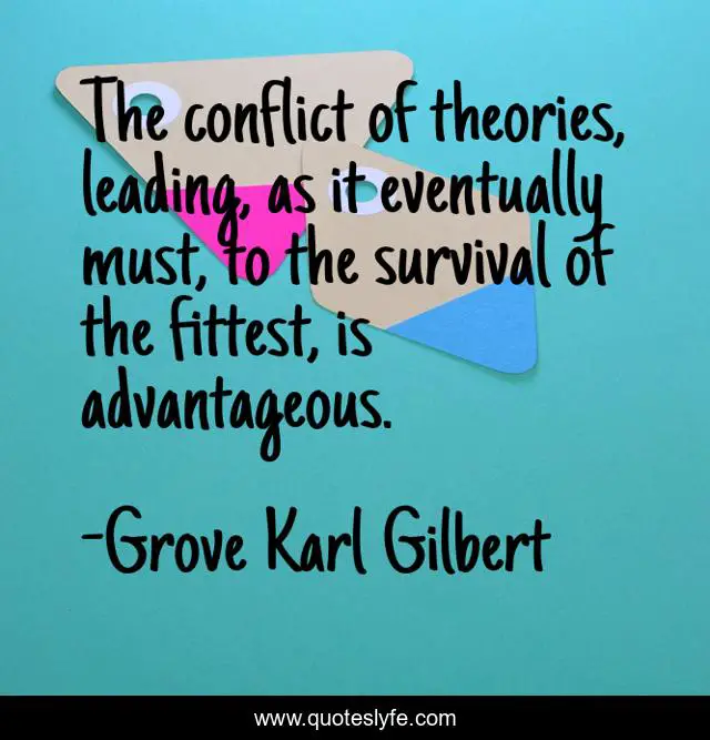 This page presents the quote "The conflict of theories, leading, as it eventually must, to the survival of the fittest, is advantageous.". Author of this quote is Grove Karl Gilbert. This quote is about science, advantage, conflict, theories,.