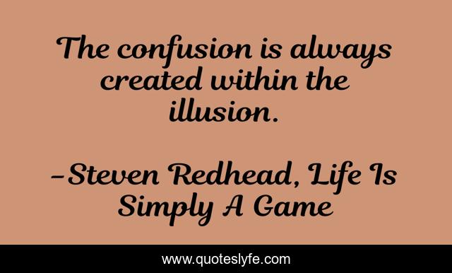 This page presents the quote "The confusion is always created within the illusion.". Author of this quote is Steven Redhead, Life Is Simply A Game. This quote is about confusion, created, illusion, life-philosophy,.