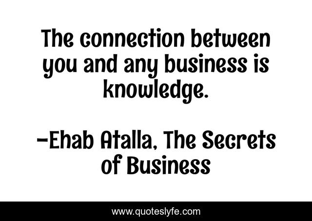This page presents the quote "The connection between you and any business is knowledge.". Author of this quote is Ehab Atalla, The Secrets of Business. This quote is about business, entrepreneurship,.