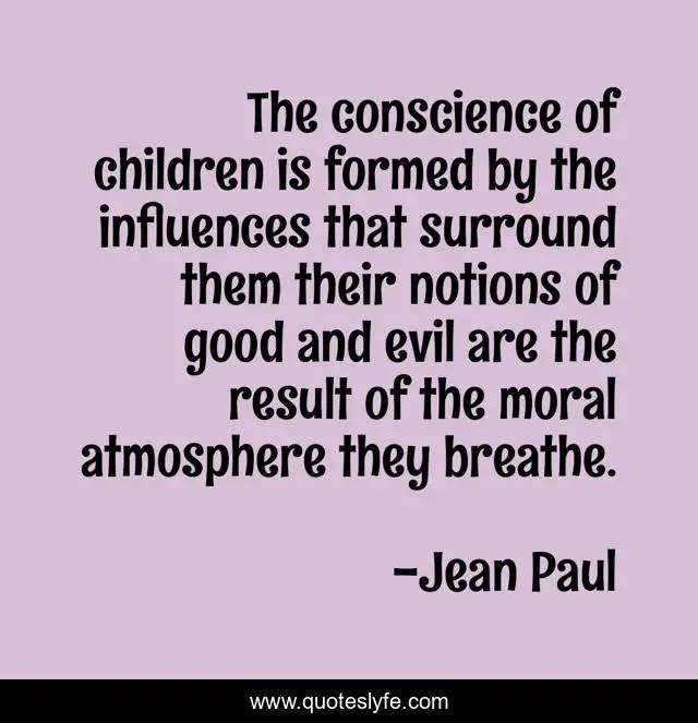 This page presents the quote "The conscience of children is formed by the influences that surround them their notions of good and evil are the result of the moral atmosphere they breathe.". Author of this quote is Jean Paul. This quote is about children, evil,.
