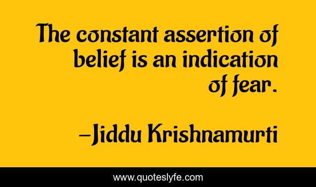This page presents the quote "The constant assertion of belief is an indication of fear.". Author of this quote is Jiddu Krishnamurti. This quote is about fear, belief,.