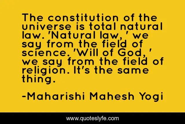This page presents the quote "The constitution of the universe is total natural law. 'Natural law, ' we say from the field of science. 'Will of God, ' we say from the field of religion. It's the same thing.". Author of this quote is Maharishi Mahesh Yogi. This quote is about god, law, religion,.
