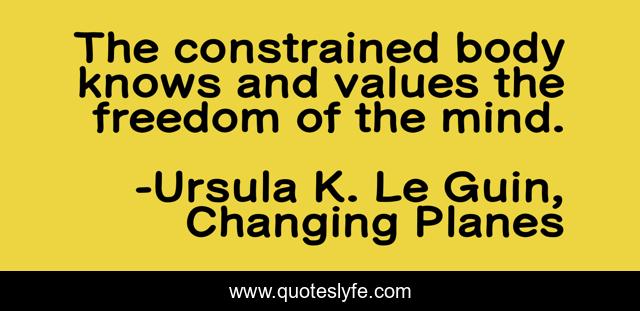 This page presents the quote "The constrained body knows and values the freedom of the mind.". Author of this quote is Ursula K. Le Guin, Changing Planes. This quote is about reading, science-fiction, fiction,.